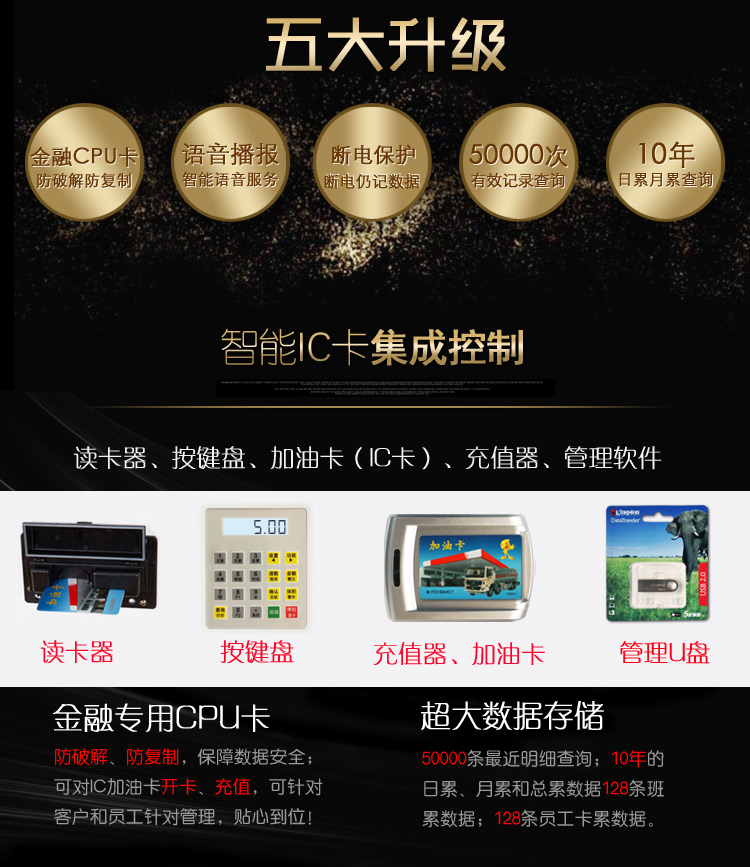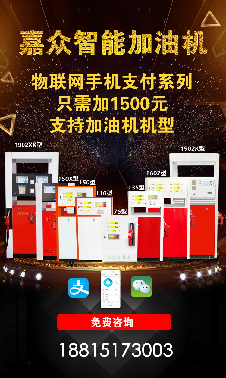 嘉眾加油站雙槍物聯網IC卡加油機1902X型是一款大型加油站防爆加油機,可外加無人看守IC卡和手機支付物聯網系統,流量每分鐘可達100L,加油機內部采用正星同款流量計和防爆組合泵裝置,安全更放心!